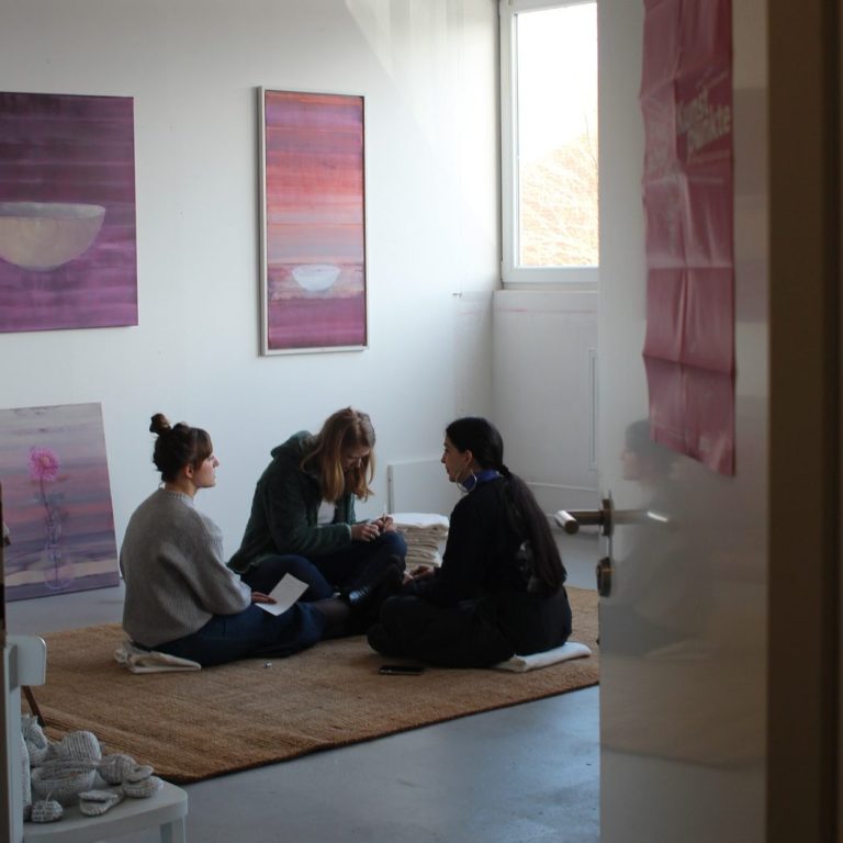 Der Austausch in der Gruppe verbindet unterschiedliche Erfahrungen und öffnet zusätzliche Handlungsspielräume. Das Arbeiten in einem Künstlerinnen-Atelier unterstützt dabei, Abstand zu gewinnen, gewohnte Denkmuster zu verlassen und Gedanken kreativ in Form zu bringen.